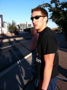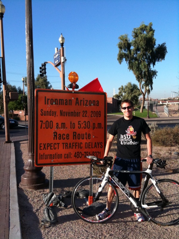 So after seeing him complete the swim (in one hour, hey!) and take off on the bike, we assumed position – at the bar. With Mill Avenue a block away, the set up couldn’t be better. Think 6th Street, but cleaner, and in the desert. Bloodies in hand, we were able to track him on my phone via the GPS unit we bought for him for the big day! Such a great idea! We were able to time our drinking and cheerleading perfectly, thus leading to a very productive and happy day.