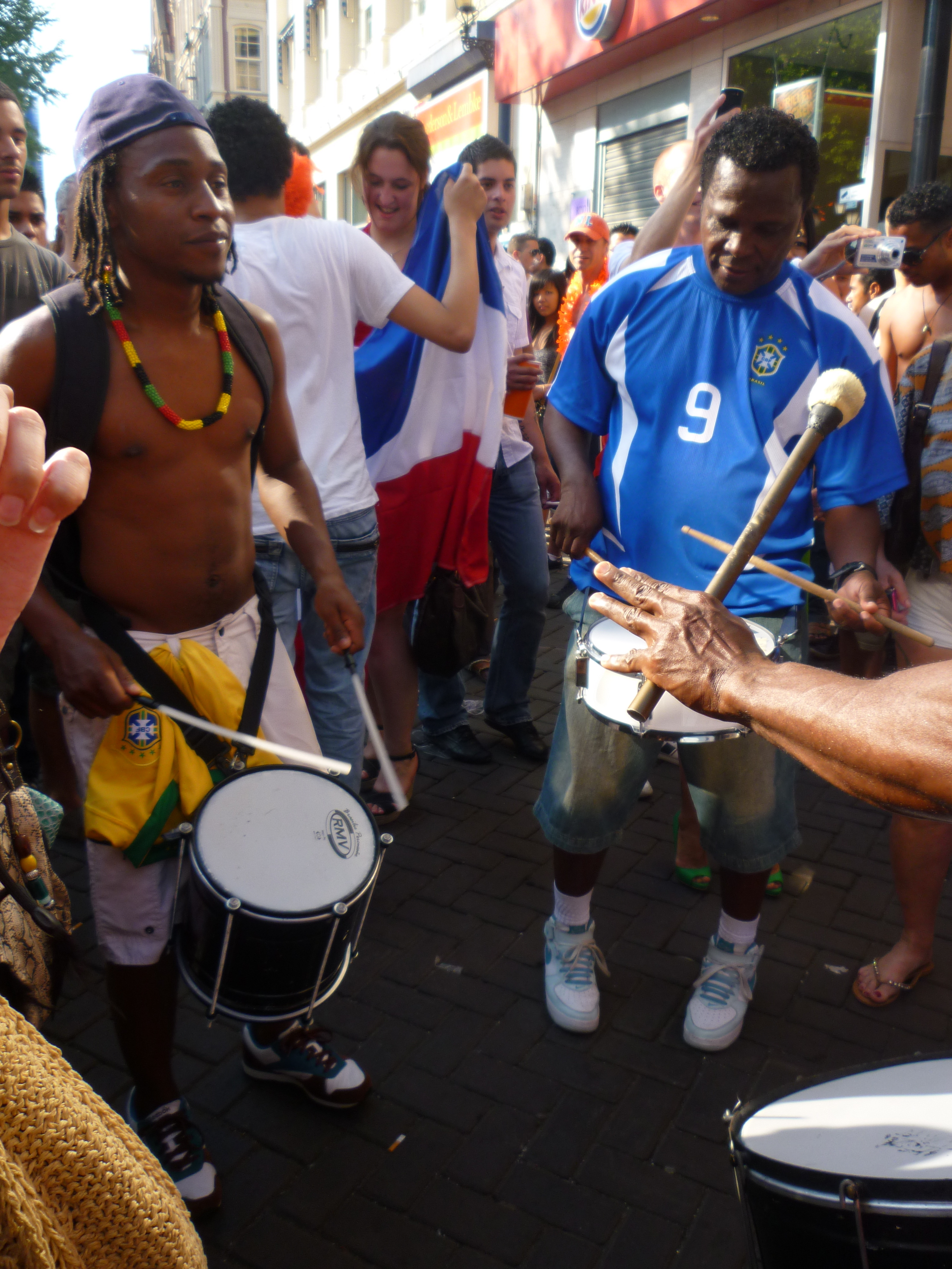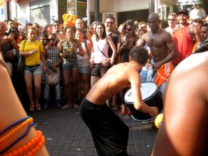 The streets were insane! We walked around, partaking in the antics, when suddenly we find ourselves in the midst of a Brasilian street drumming session. It was fab. Swirls of yellow, blue, green and orange were vibrating, dancing and thrashing in a beautiful chaotic frenzy. The excitement was palpable. I wanted to reach out and grab these sensations and pocket them for later use. But that would have been weird…