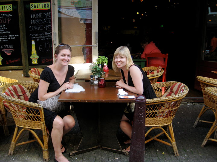 The next day we opted for a tamer version of Holland and signed up with a walking tour that our hostel sponsored. We gathered in a huge plaza by the Royal Palace for this tour, when I turned my head slightly to the side and saw a cafe beckoning me with cozy chairs, “milky coffee” and grand sweeping patio umbrellas. Our fate was sealed. We ditched the tour and opted for legally addictive substances instead. Which, in Holland, I guess could mean reefer. But in this scenario I am referring to coffee.