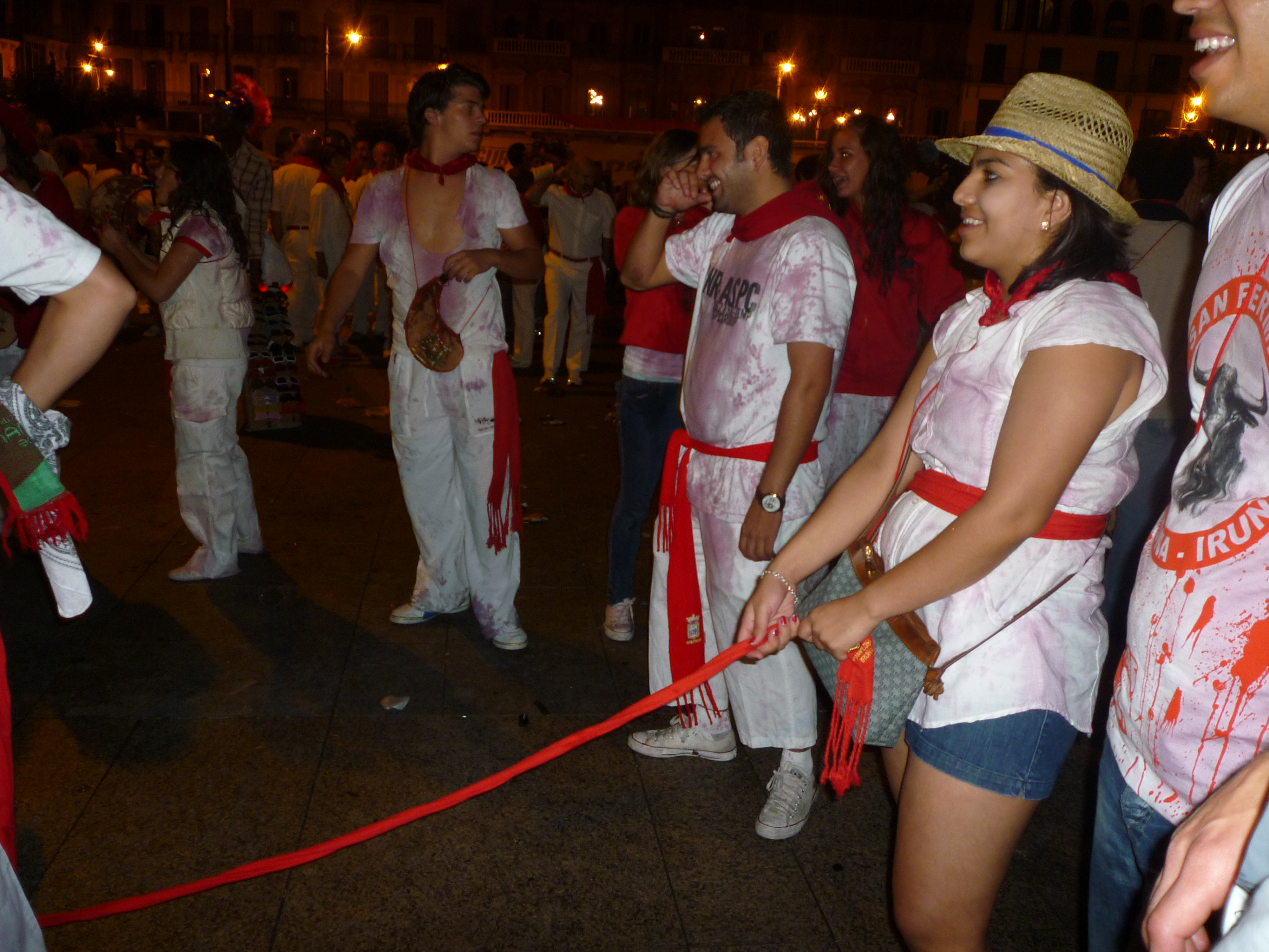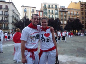 In true globe trekker style, we immediately hop a train to Pamplona, no time to rest or shower. We arrive in Pamplona and are immersed in a sea of red and white. Everyone, and I mean everyone, is wearing the traditional white and red outfits, complete with scarves and handkerchiefs. Lonster and I find a shop selling the outfits and jump on board. I’ll admit – I threw a bit of a fit and wasn’t happy until I had one, too.