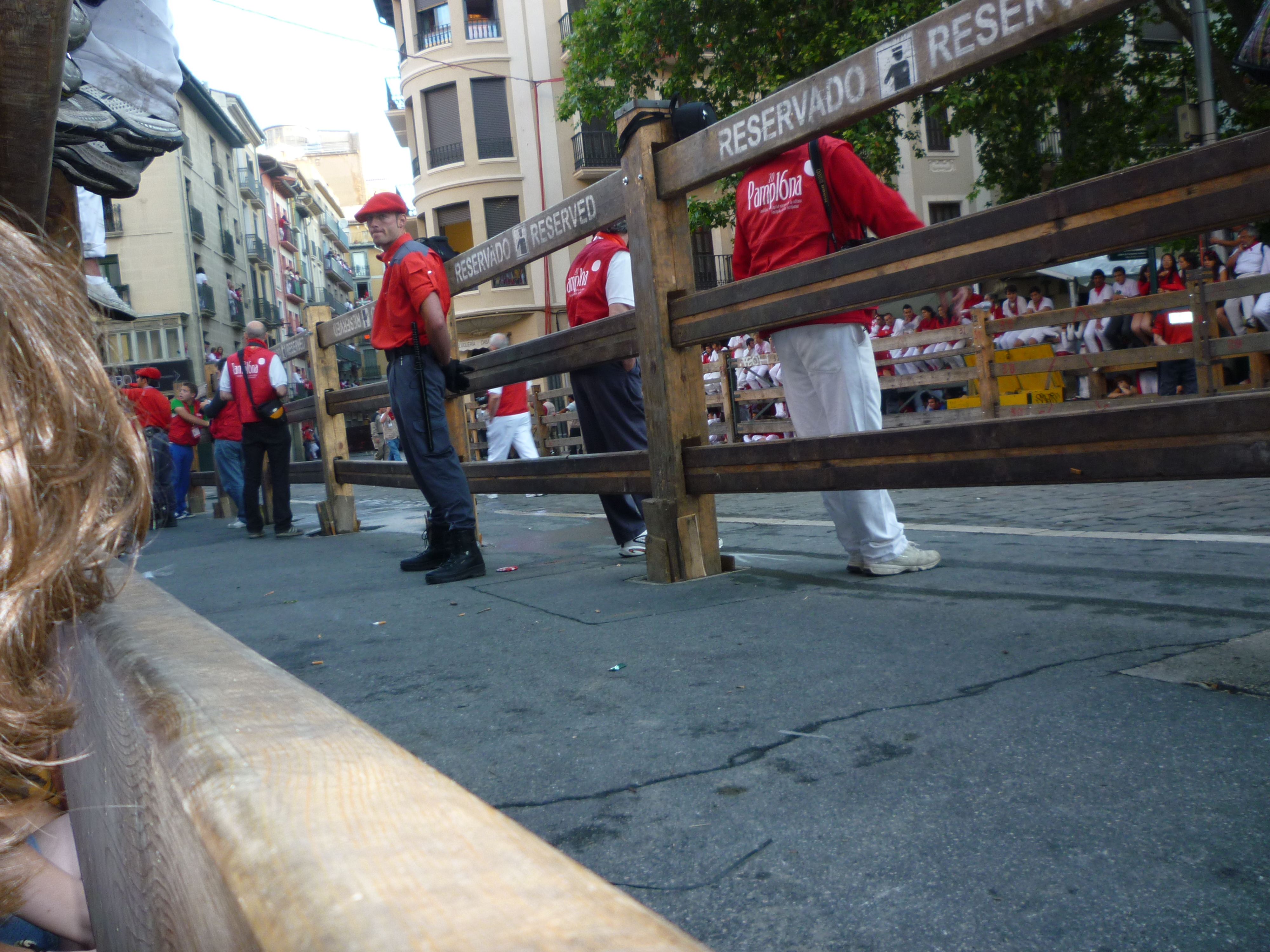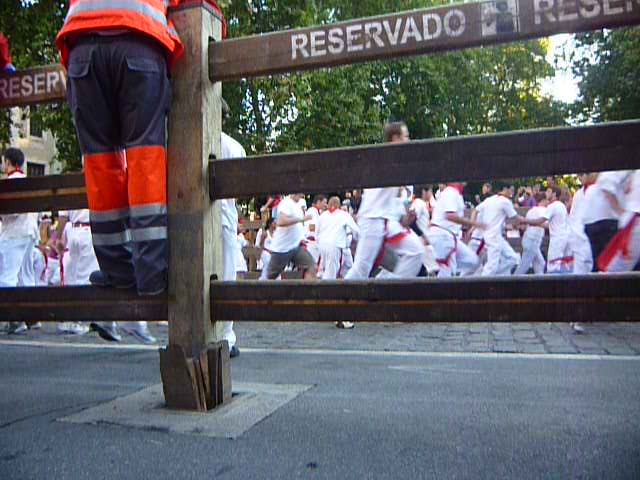 Before the sun rises, Lonster says it’s time to settle down and act like adults. Right. So, we wander off to stake our claim along the bull path, but by 6am it was already too late. These people are professionals, and most have had their spot claimed since 5am. Damn our amateur ways!
