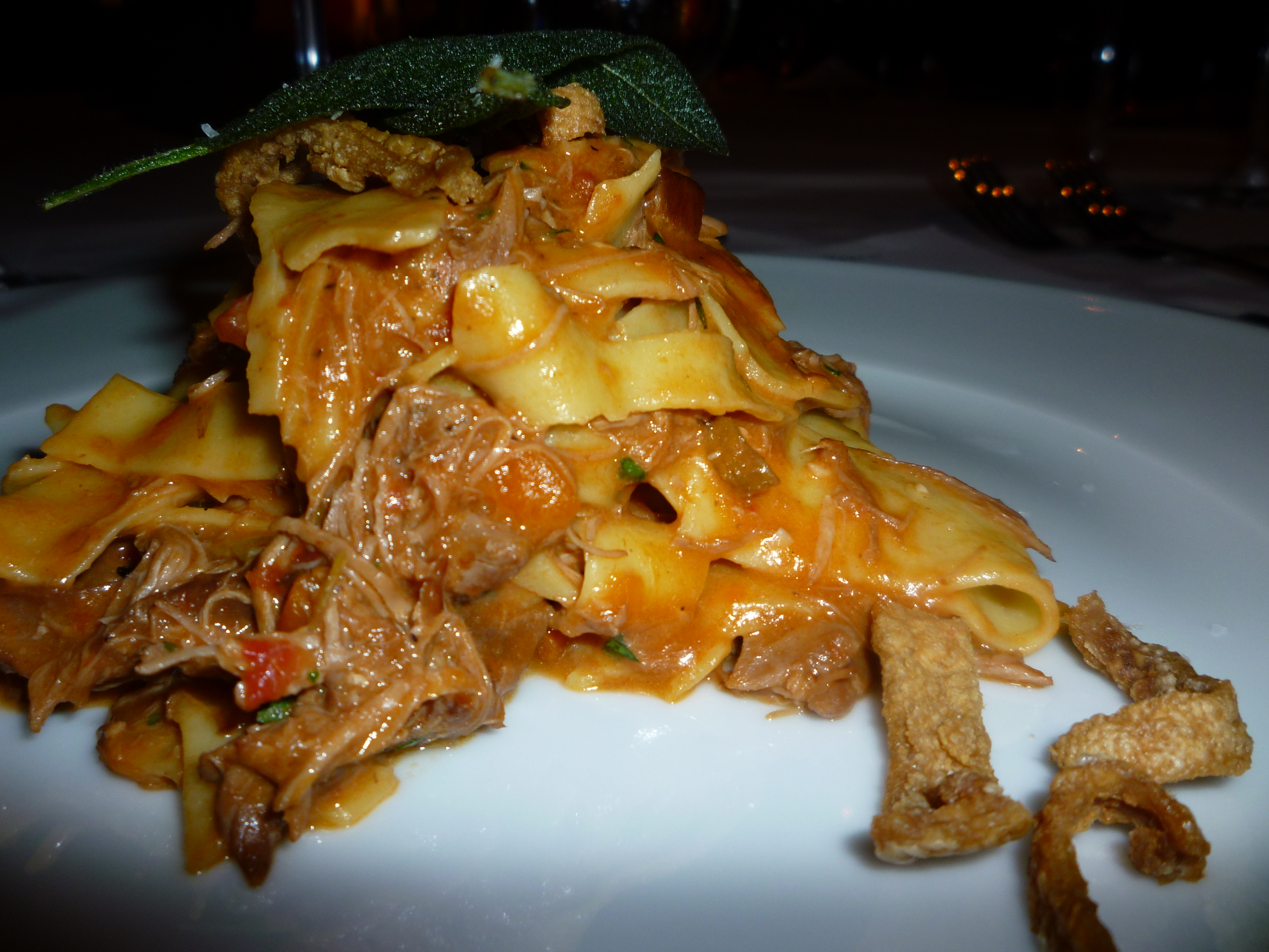 The duck ragu is a traditional Tuscan dish. Long, flat pasta wrapping its starchy arms around shredded roasted duck, all sitting in a light and airy sauce that is weightless yet dense at the same time. Such a lovely savory dish. Add some fried sage and pow! That’s right – fried fresh sage leaves right on top. Who came up with that? Genius. Top with buttery Asiago and duck cracklins. You read that right. All made in house.