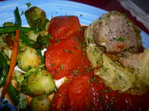 The restaurant focuses on French comfort food. For our entrees, I got the Trout Almondine while Raul opted for the lamb stuffed cabbage with tomatoes.
