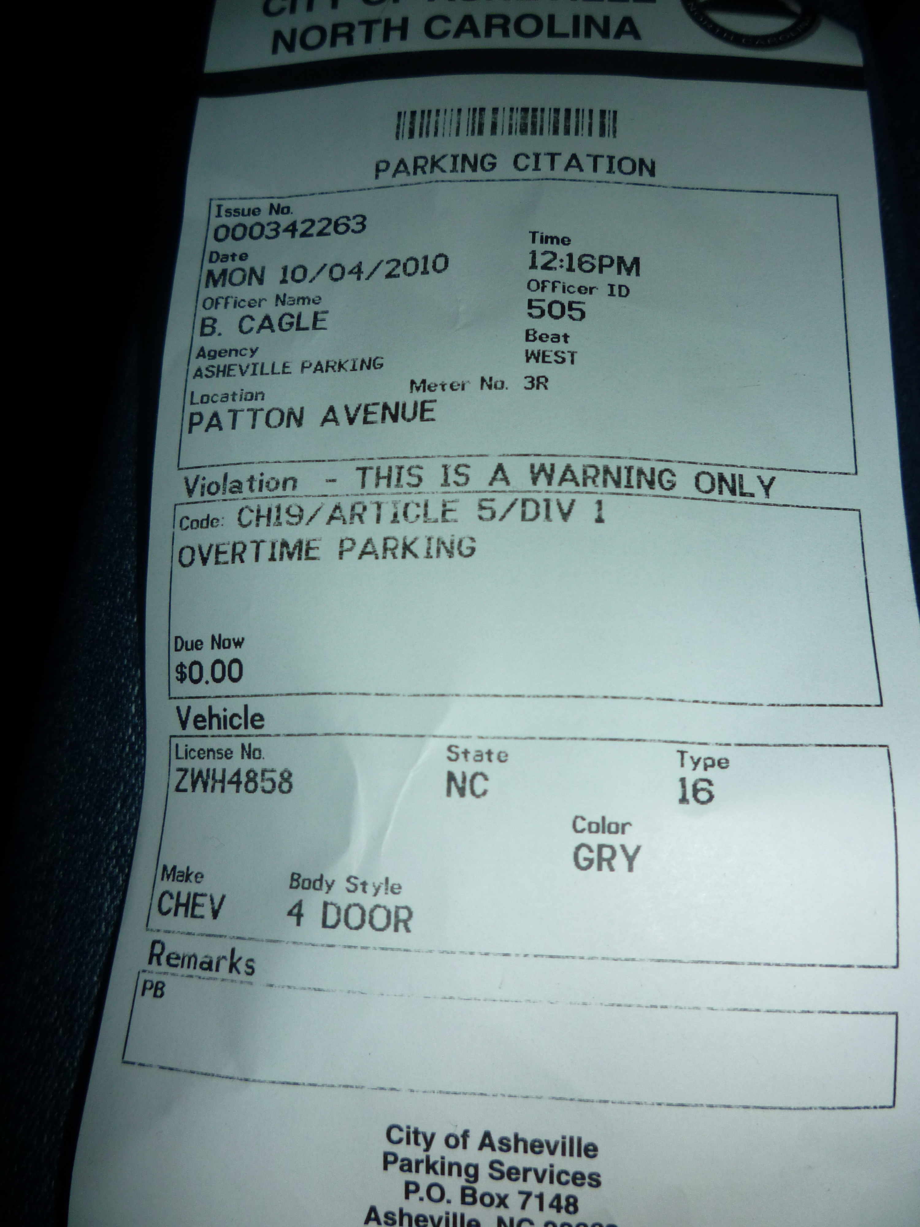 As we head back to the car, our mood darkens a bit as we see a parking ticket on our car. Sigh. What a thorn in our perfect weekend. But…what is this? Upon further inspection, we see that NO fee is due. No fee?!??! What is this place, heaven???