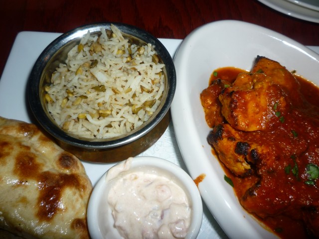 I wanted to go for a proper Sunday roast, which they offer and which I’ve never had, but was discouraged by the fools I was with and chose the tikka misala instead. The fella ordered the lamb vindaloo. I’ll be honest – the tikka misala disappointed me. The chicken tasted rubbery, if you can imagine, and the sauce just seemed to be lacking some punch. However the lamb vindaloo! Hold me back boys, I’m diving in. It was incredible. And lo, what could the Universe have in store for me this eve but the fact that the fella preferred MY dish over HIS! Praise praise. We swapped and were happy campers the rest of the meal. Do you see how soft and buttery that naan is below?? I think I ordered 2 extra sides of it. Don’t judge.