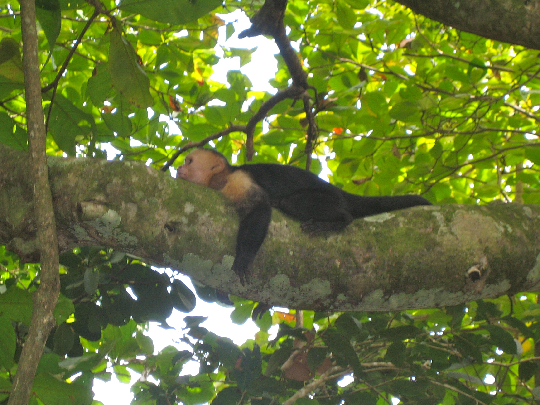 Our Costa Rica tour ends in Manual Antonio, home to one of the most beautiful beaches I’ve ever seen in my entire life. Towering rocks jut out of the ocean in the distance, obsidian against the cerulean sky. The Pacific beckons with lazy fingers, while I battle between swimming or lying under the thick palms from the jungle that backs straight up to the water. Are those monkeys playing above my head? Sure are.