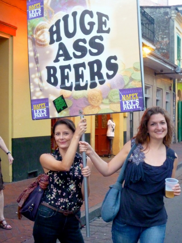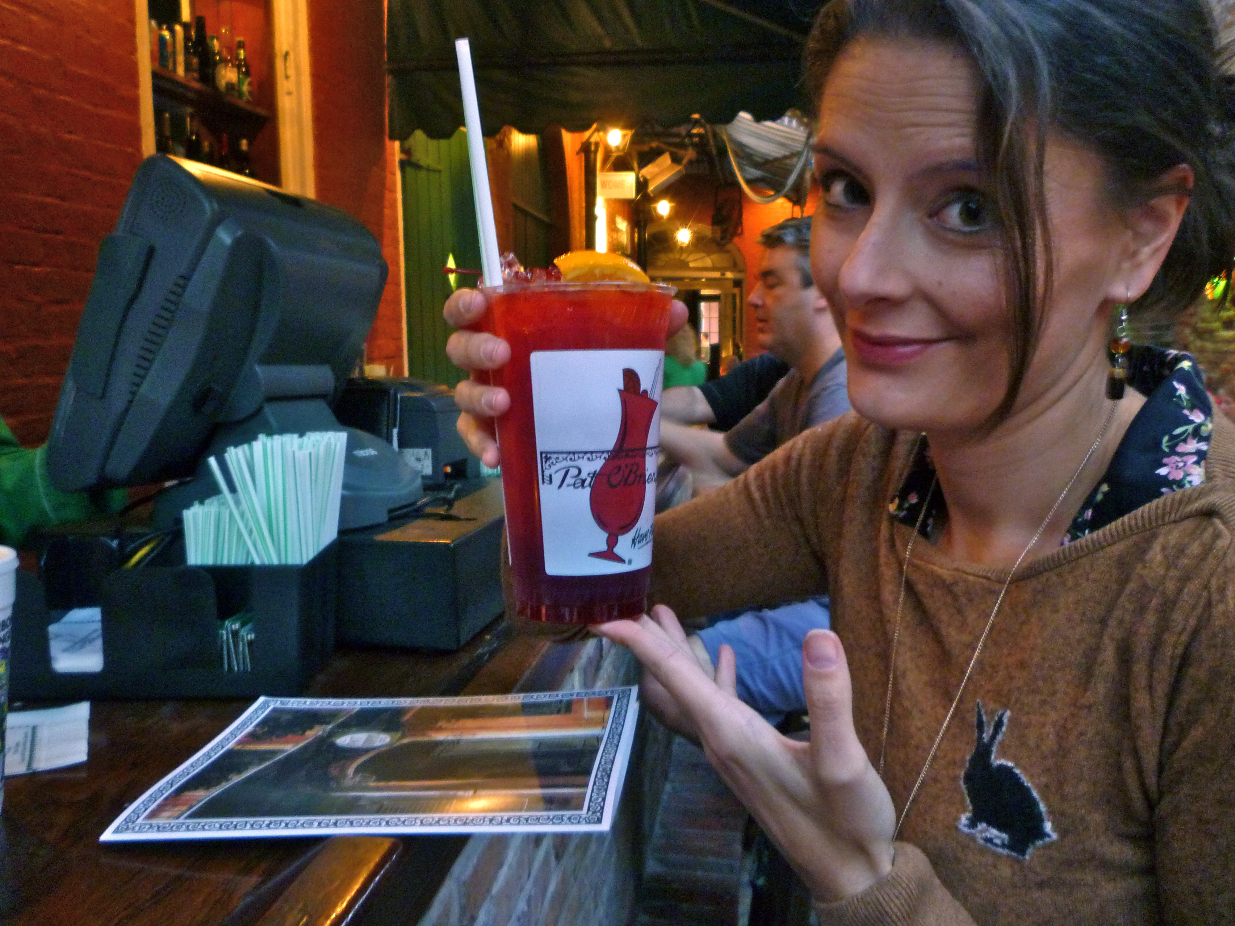 First thing’s first: we take the street car to the shit show that is Bourbon Street. We immediately pop into a daiquiri factory and get our go-cups. Kim is appalled by the smell of urine and vomit and trash, at 6pm on a Monday night. She hasn’t learned the art of breathing through her mouth yet. In due time, little grasshopper. Due time.