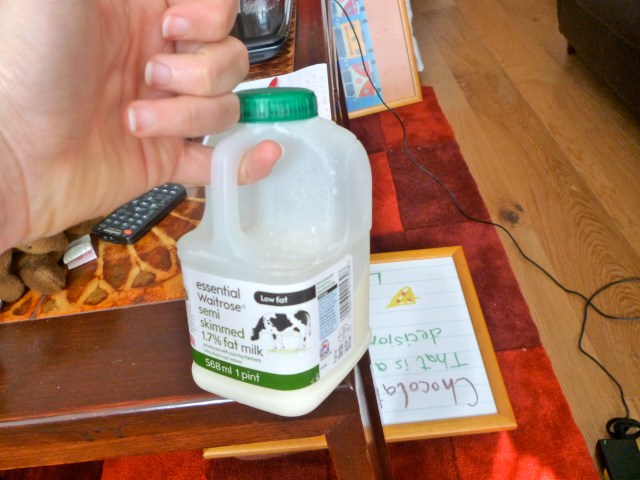 I make some tea to make myself feel better. But look at the milk! It’s made for babies. I couldn’t get over it and had to take tons of pictuers.