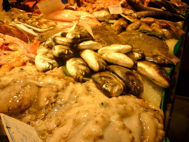 We then bugger off to Mercat St. Josep La Boqueria to get our dinner items. According to Wikipedia, there is first mention of this market in 1217. Joder! I love a good market. The colors! The smells! The sights! Take a peek…