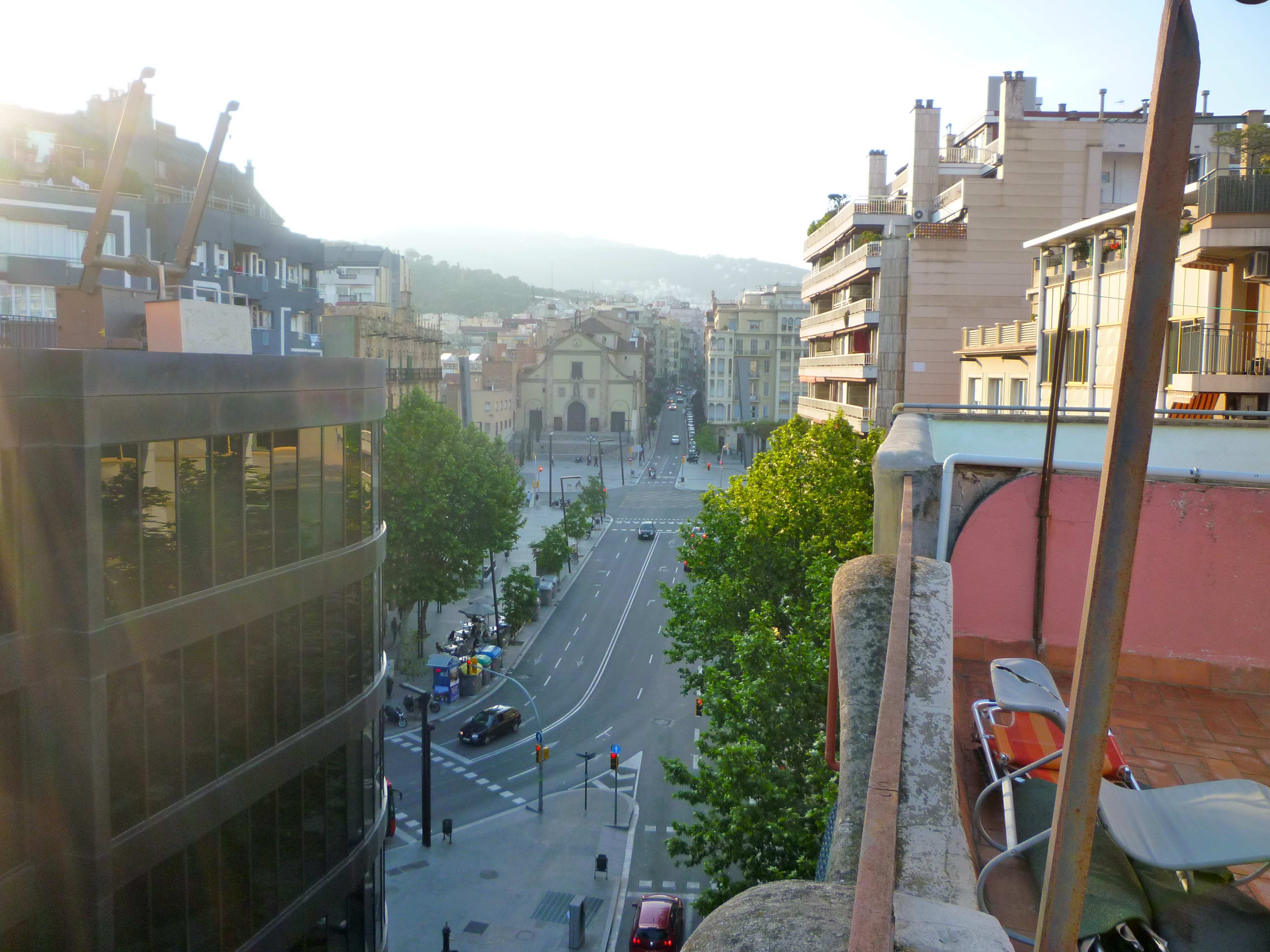 view from Chelsea’s rooftop terrace, Tibidabo in the hazy distance