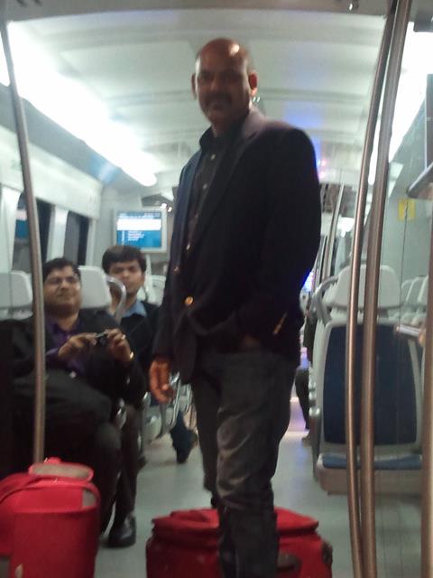 522571_10151497740118536_1103480249_nOnce in Delhi, we have a ton of time before our 3AM flight so we hop on the Metro to go eat at the same restaurant where we first began our journey as a group. Awwww sentiments. This guy on the train starts unabashedly taking pictures of Cerrie and me. Bobby starts taking pictures of him to show how creepy he was. Instead of being shamed into sitting down, the guy starts posing! Way to beat us at our own game, sir. Well played.