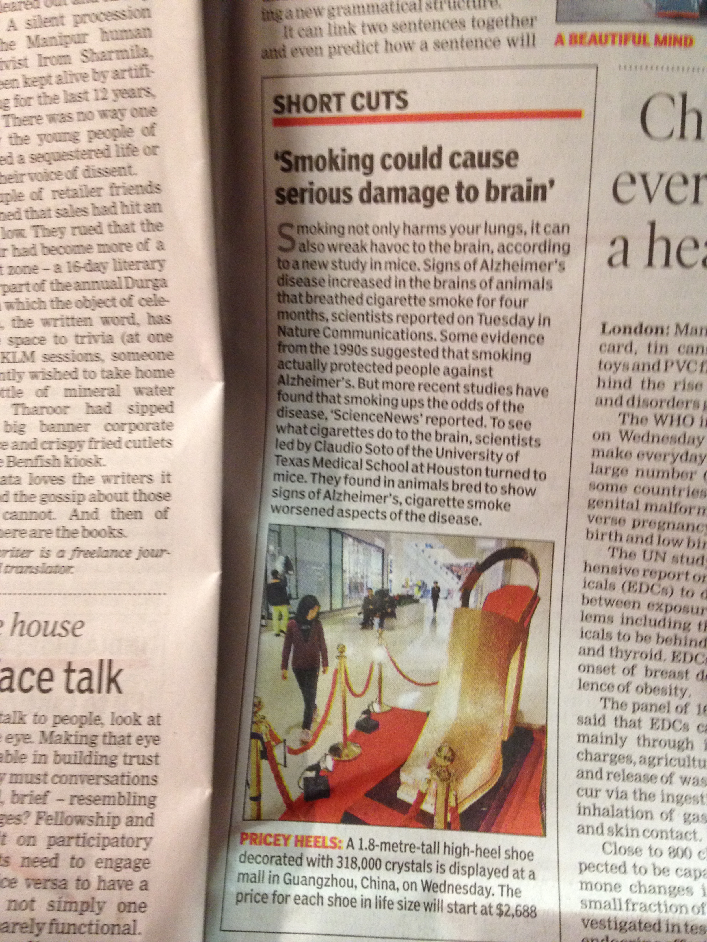 Once we’re all in the terminal, Chad sweet talks our way into the British Airways members club where we can eat and drink and wait for our flight. I read newspapers with breaking headlines like these: